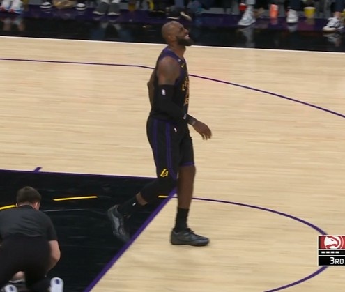 GIF-詹姆斯上篮落地一瘸一拐